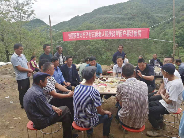 乔迁新居当天,村民自发组织燃放了许多鞭炮,县民政局派驻火石子驻村工作队一大早就在门上贴上了喜庆对联。大门上贴着;迁新居感谢共产党,真扶贫不忘工作队;听党话生活越来越好,感党恩日子越过越甜;帮扶单位还统一帮老人们安装上了大理石灶台,购买了新床,添置了新桌子,送去了大米和一些日常用品,完善了卫生间、水电等基础设施。老人们一进来就可以安心的居住了,他们心中的喜悦之情不言而喻。老人们激动的逢人就说:“都是党的政策好,让我们住上了新房子。”村中一位大嫂说得好,还是共产党好,就是有儿有女的人家也未必照顾的这样好。不善言辞的张文锡老人对新住的房子很满意,一个劲地感谢党和政府的关怀。
