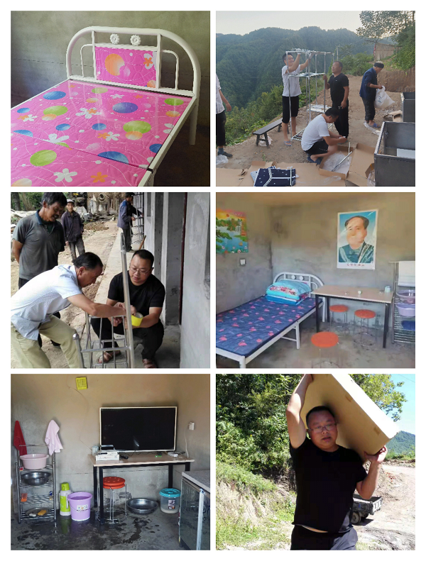 上图是宁强县民政局派驻火石子村驻村工作队在为老人搬送安装家居