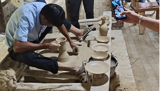 苏沧桑(浙江省作家协会创研部主任、浙江省散文学会常务副会长):苍南虽然不大,但是风景优美,也很有当地特色,这里有着浓厚的农耕文化,同时完美结合了海洋文化。苍南人的性格豪爽、能干、智慧,有着敢为人先的优秀品质。在碗窑,我亲手参与制作微陶,所以对碗窑的制瓷文化有着切身的体会。我曾经接触过龙泉青瓷以及南宋官窑等窑瓷器皿,相较而言,苍南的碗窑有一种特别古朴的味道,它不仅仅蕴含着一股田园气息,还有一种特殊的海洋味道。在听说当地老百姓烧制出碗窑是用来做餐具,而不是拿来观赏时,我觉得碗窑很有实用性且特别接地气,这也特别契合苍南的气质。
